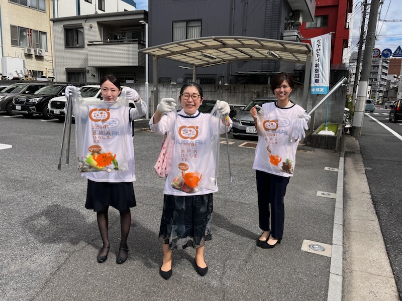 今回、広島県が推進する海洋プラスチックごみの削減プロジェクト「GSHIP」と連携し、県内の清掃活動で回収された海洋プラスチック(カキパイプ)を再利用したオリジナルのごみ袋を提供いただきました。そのごみ袋を利用し清掃活動を実施しました。