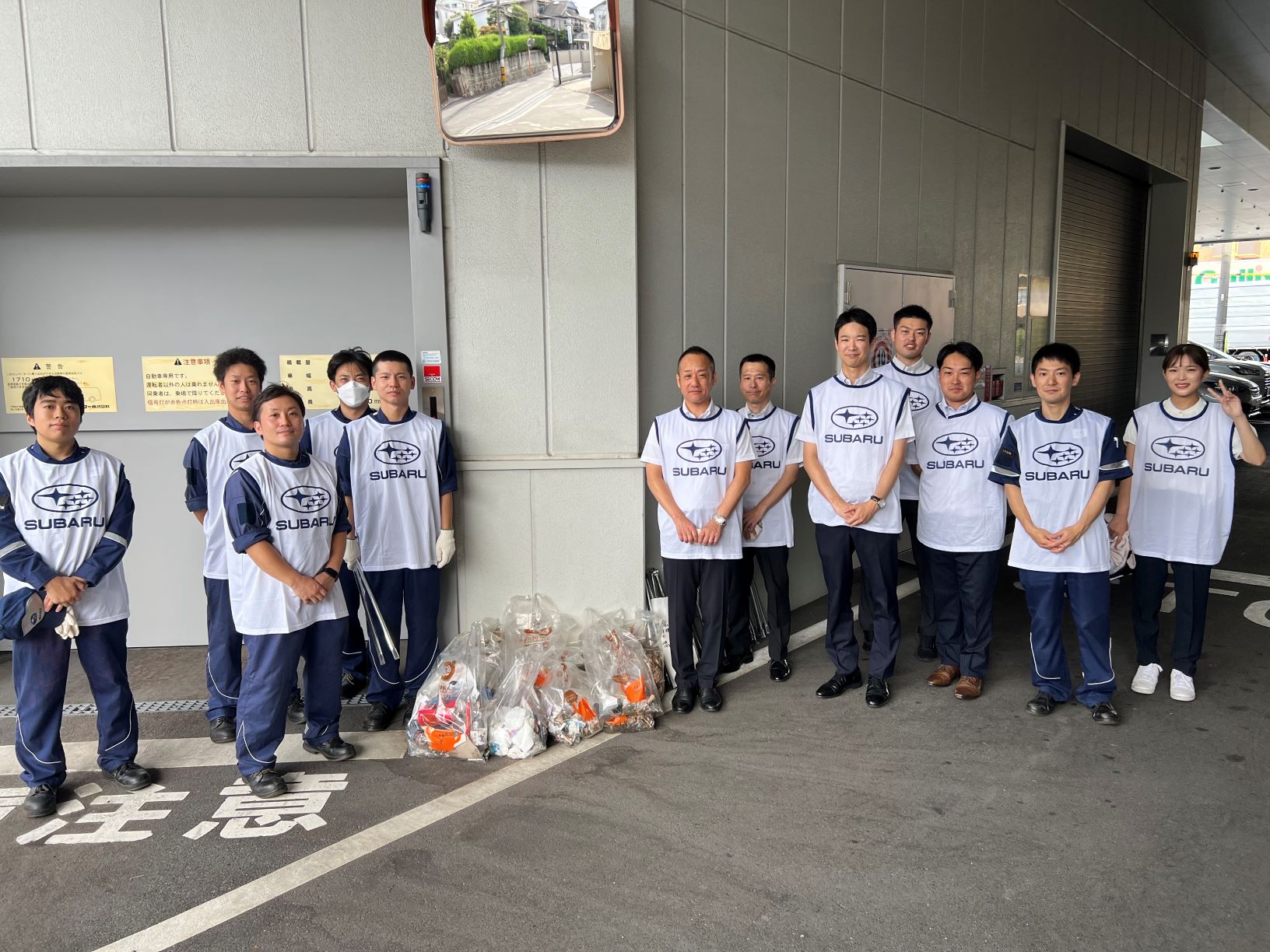 広島スバルでは3ヶ月に1度店舗の周辺清掃を実施しています。