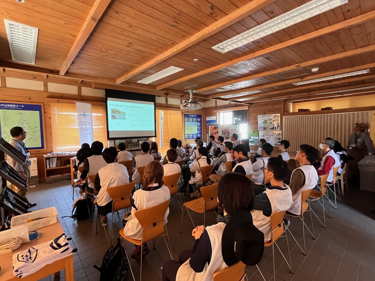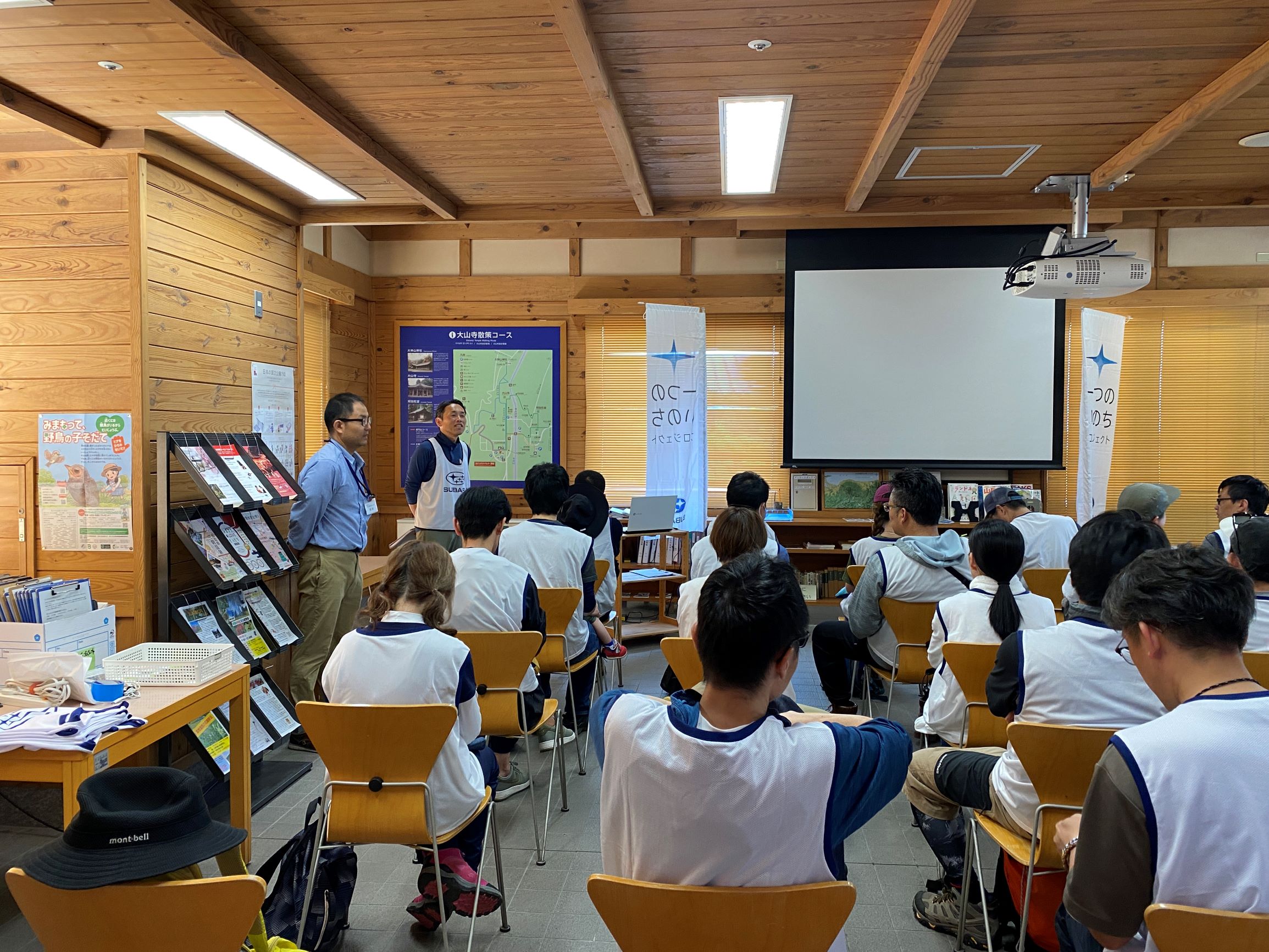 「大山における自然公園財団の関わり」と題して、公園の維持管理の活動と、大山山頂の緑化活動の歴史について学びました。こんな活動があったのだと皆興味深く聞き入りました。スタッフの皆様が大山の自然を守る為多くの活動をされていることを改めて知りました。個人的には、環境変化で姿を消した昆虫を再導入するための活動に興味がありまりました。植物の保護だけでなく昆虫との関係回復も自然保護の一環なんだなと勉強になりました。ご説明頂いた「一木一石運動」については午後の活動で体験できるということで楽しみです。