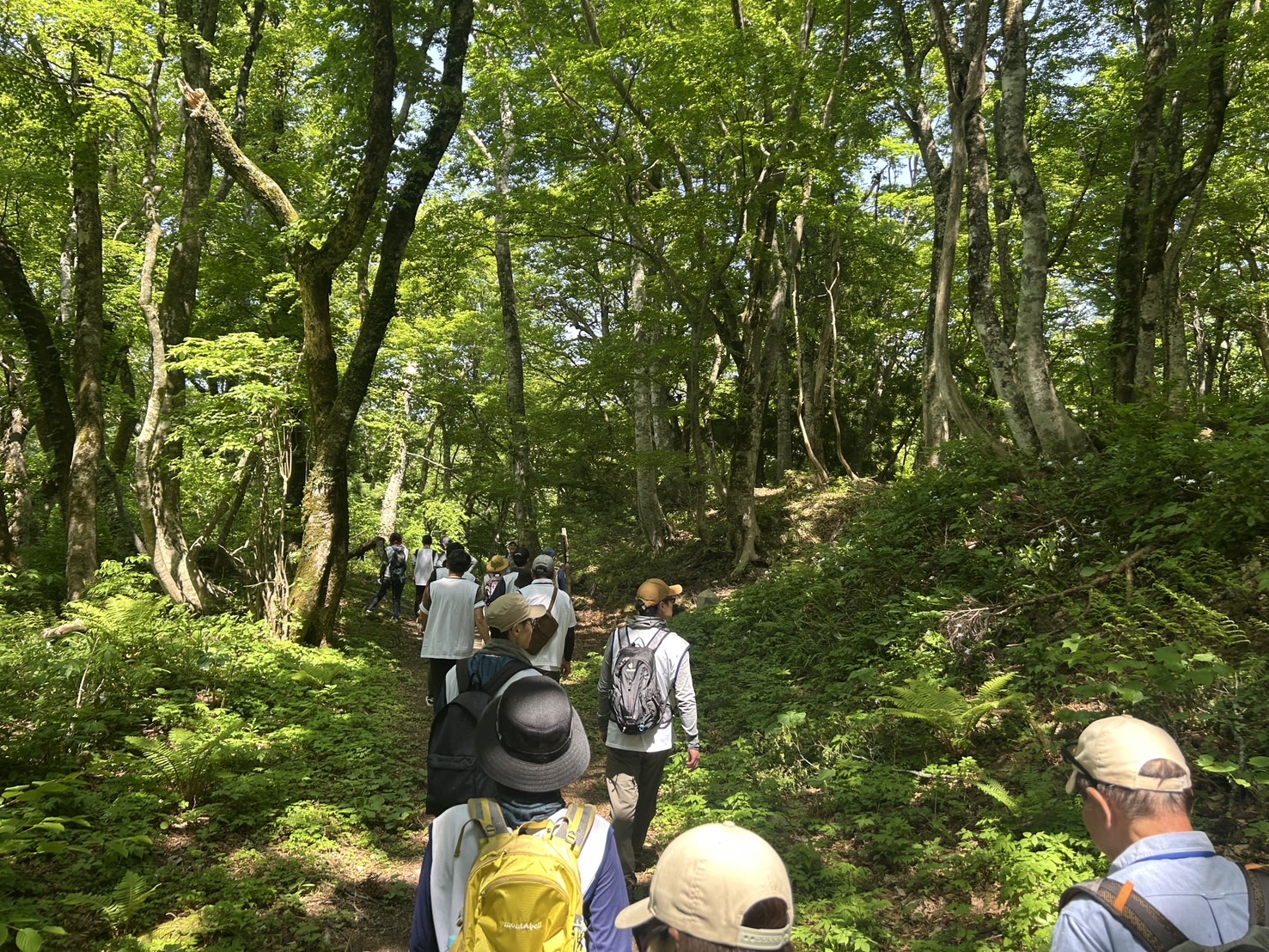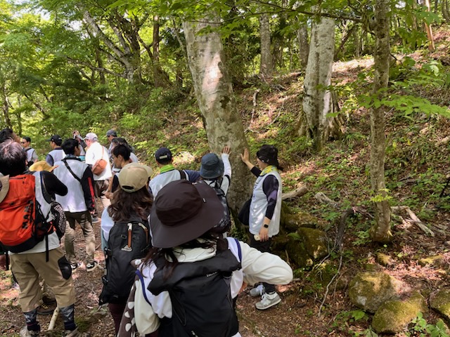 太い杉の木やブナの林の中を歩きます。この辺りは昔から1木1草切り出してはならないとされており、そのため巨木化していったと説明がありました。