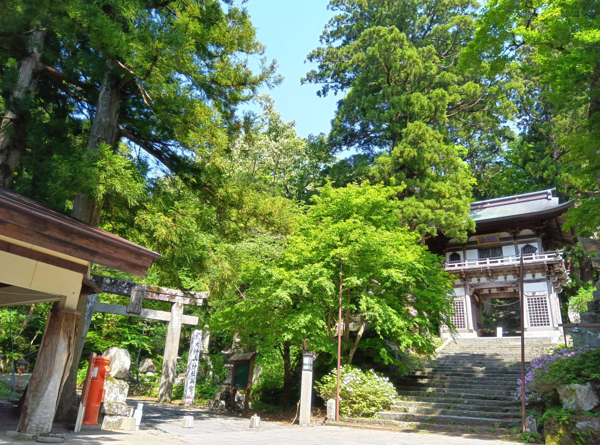 さあ、ゴールは目前!大山寺山門前を通り、参道を下り、大山NPCに到着します。約1時間しっかり自然を満喫しました。