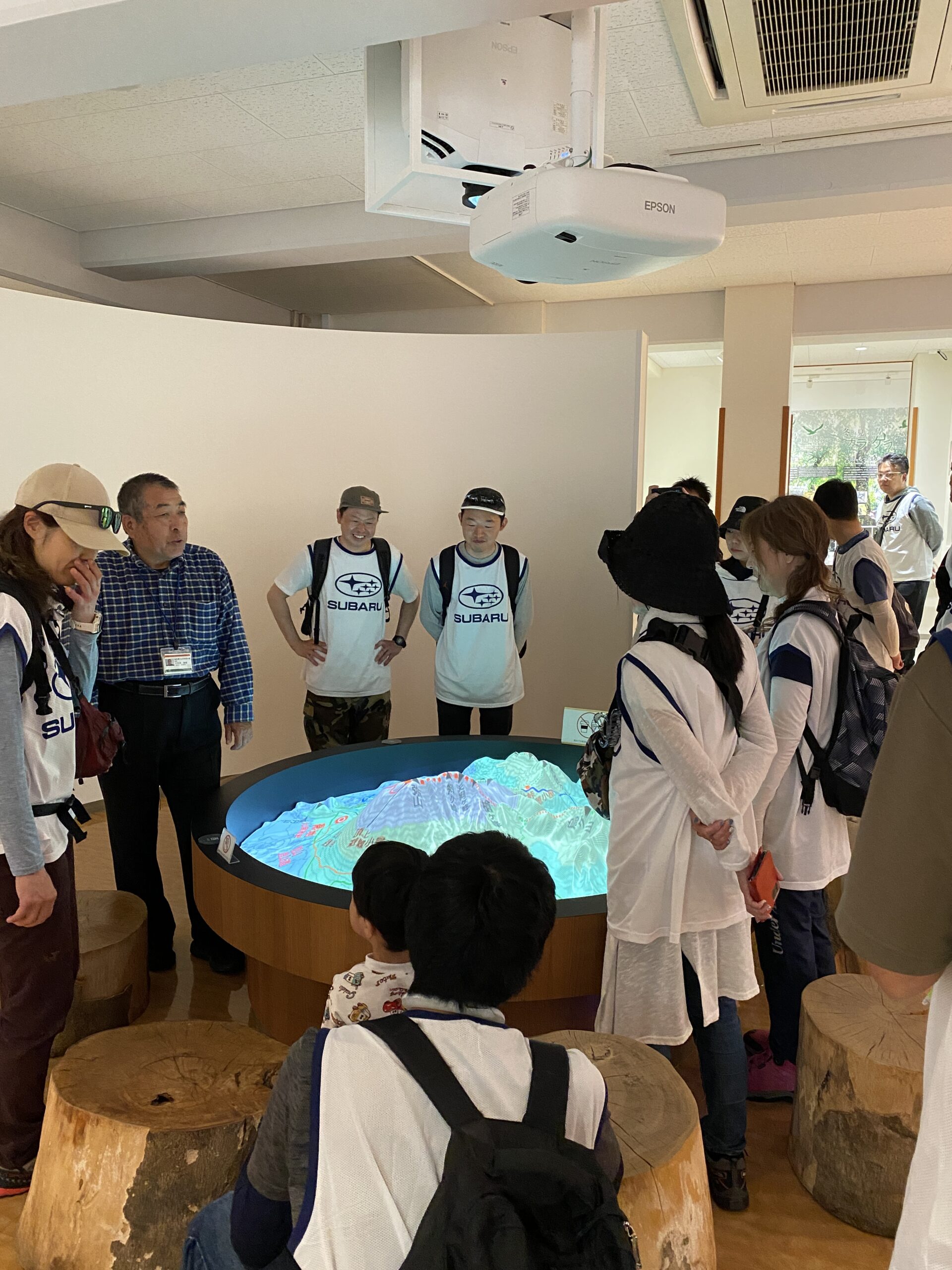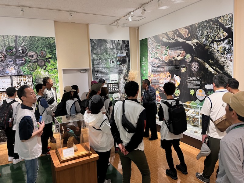 次は、大山NPCの向かいにある 大山自然歴史館の見学です。今回、館長が直々に説明していただけるそうです。意気込んだ館長は、座学の会場付近まで迎えに来ていただいており、大山NPCのデッキにて、参加者とご対面!大山の景色を見ながらのスタートとなりました。