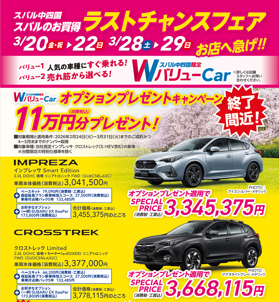 スバルのお買得 ラストチャンスフェア