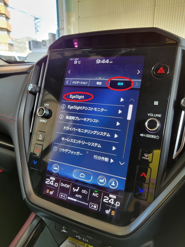 ②次に「車両」のタブを選び、「EyeSight」の項目を選びます。
