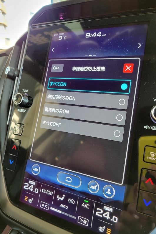 「警報音のみON」にされるとパターン2の画面になり、車線から逸脱してもハンドルのアシストはございませのでご注意くださいませ。警報音のみ鳴ります。