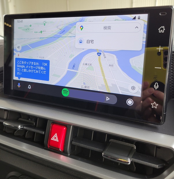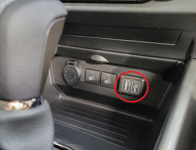 ↓の写真。ナビ下にUSBの挿し口があるので通信用ケーブルとスマートフォンを繋ぐと簡単に設定ができます。