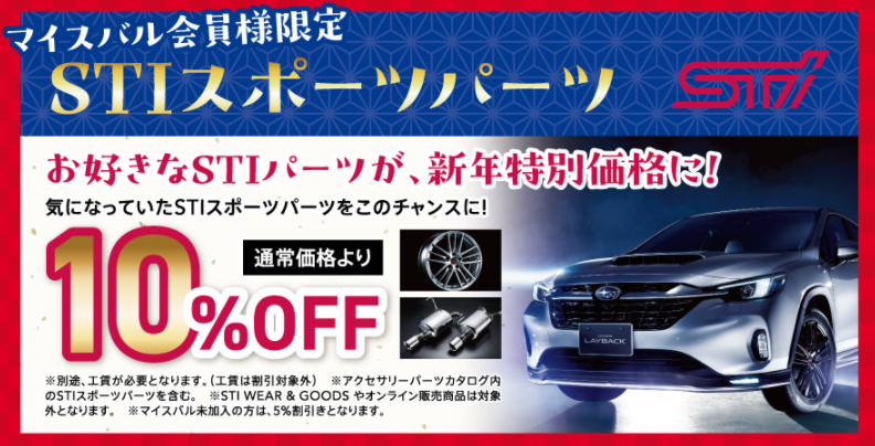 人気のSTIスポーツパーツ用品の10%OFF![]()