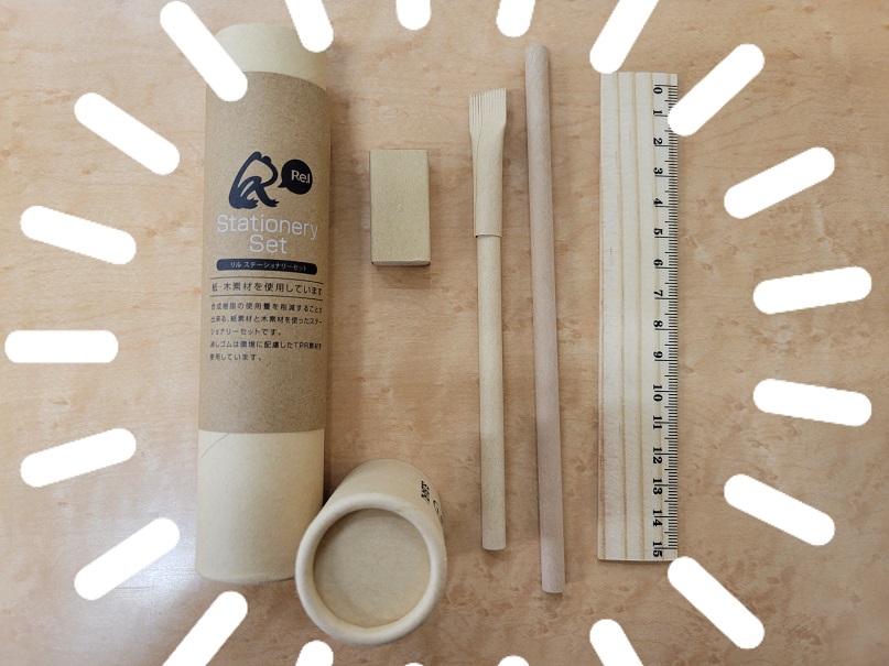 左から、消しゴム、ボールペン、鉛筆、定規です!