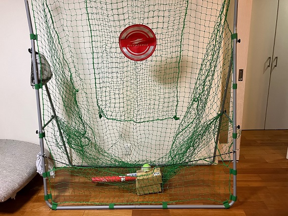 ついつい買ってしまいました。自宅リビングで毎日バッティング練習です。