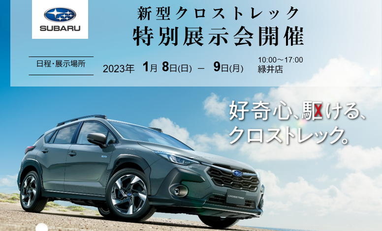 本題です。年明けの1/8,9の日曜日、月曜日に緑井店に新型クロストレックの展示車が上陸します!