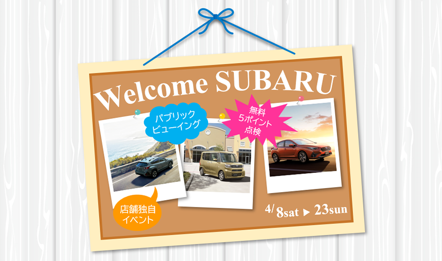 「Welcome SUBARU」引き続き、4/23(日)まで開催中です!!