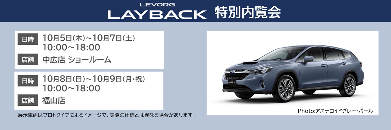 先行予約受付中のLAYBACKですが、上記の日程で特別内覧会(中広店・福山店)が開催されます。