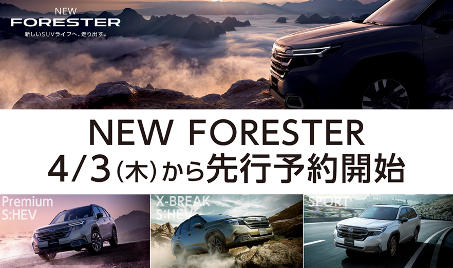 時を同じくして、4/3(木)から新型フォレスターの先行予約を開始しました!
