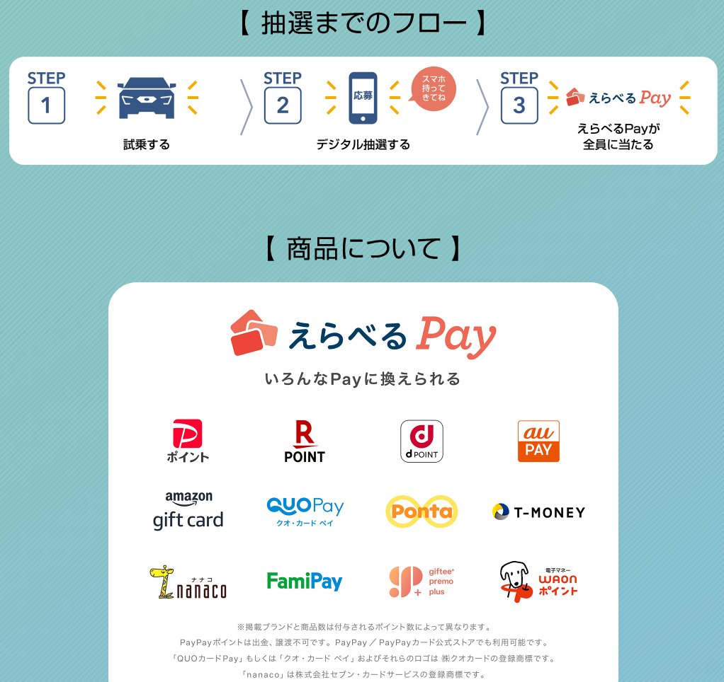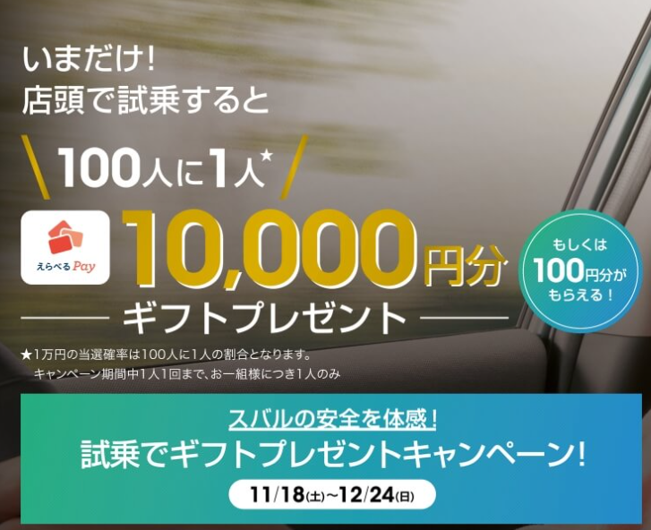 店頭でのご試乗で「えらべるPAY」ギフトチケットプレゼントいたします。