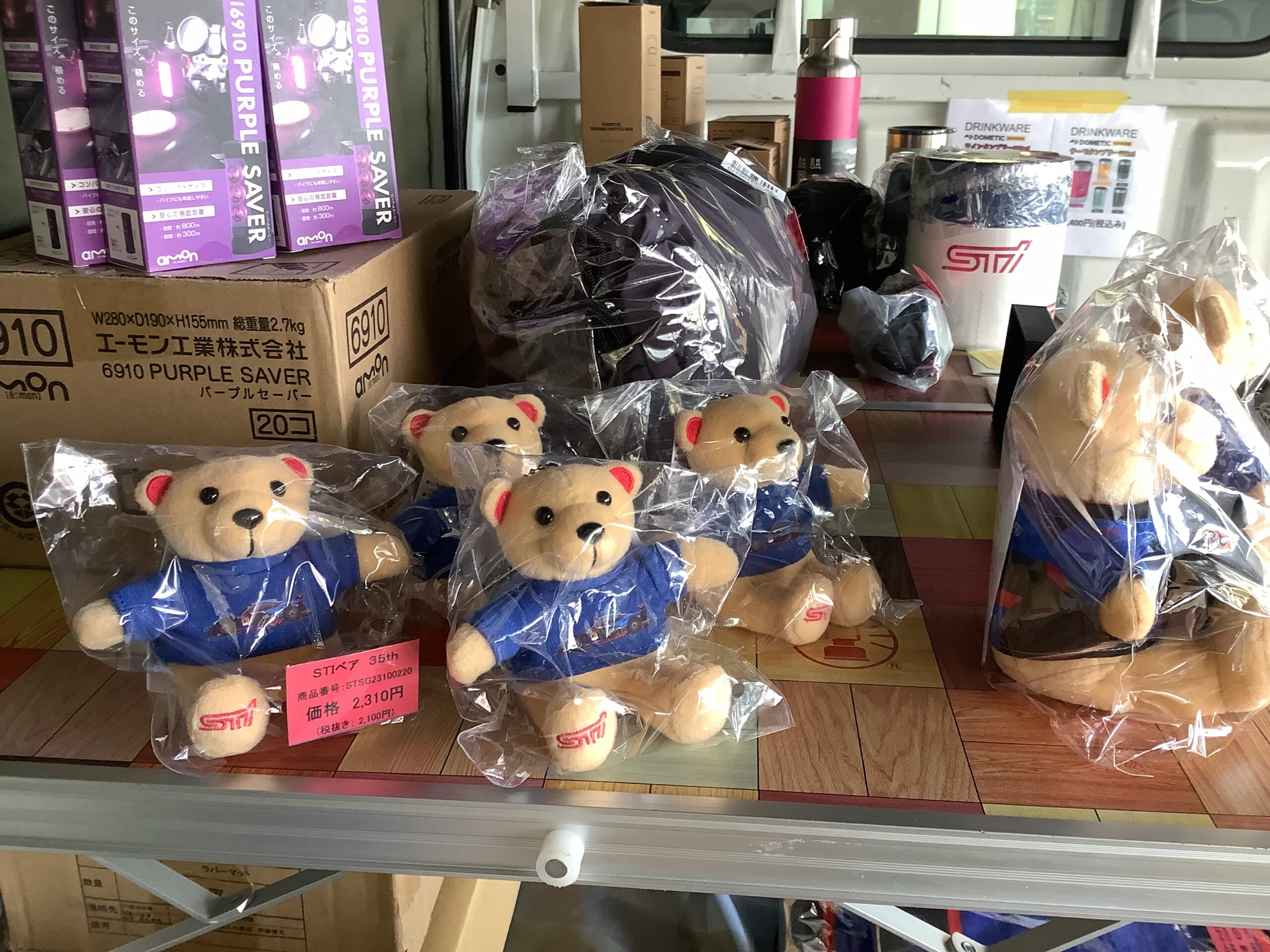 STIの服を着たかわいいSTIベアや大人気のSTIマグカップが販売中です