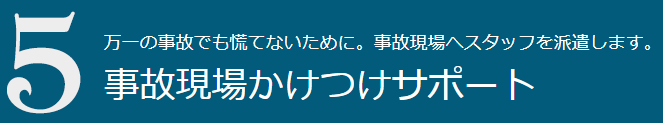 事故現場におけるお客様の安全確保や救急車の手配など、かけつけたスタッフが適切にサポートさせていただきます。