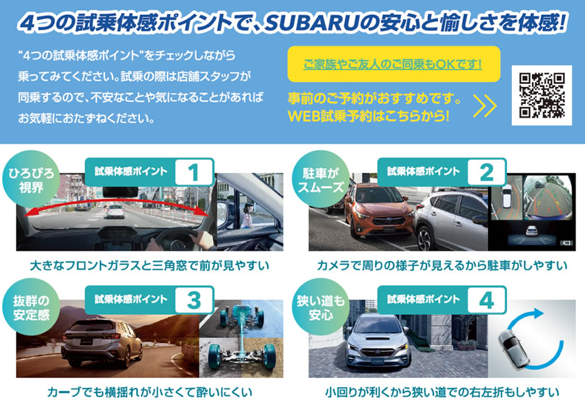 試乗体感ポイントでスバルの安心と愉しさをぜひ体感してください!