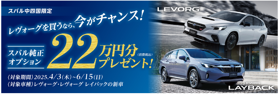 レヴォーグ・レヴォーグレイバックにはスバル純正オプション22万円プレゼント!