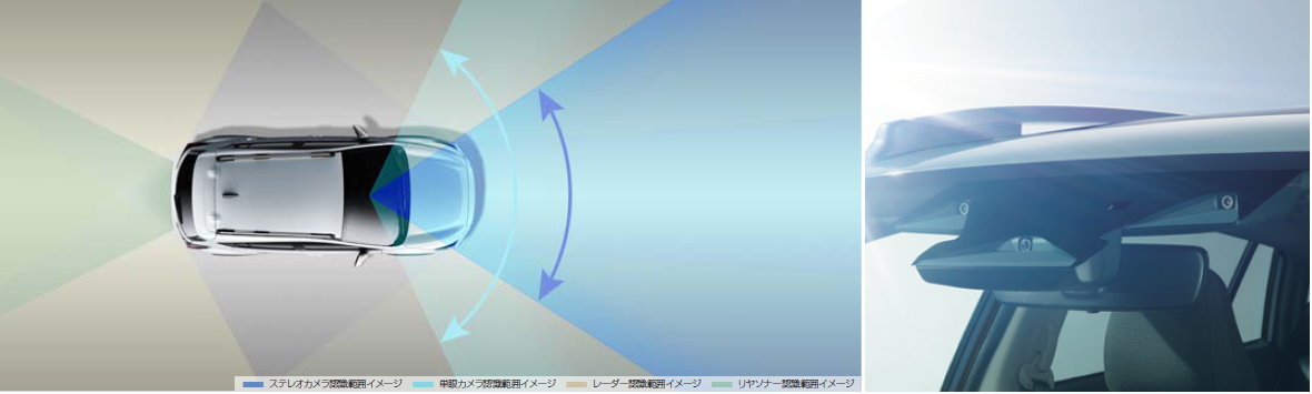 新しい3つ目のステレオカメラにより、車両付近の人物や二輪車を識別し、