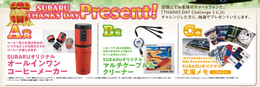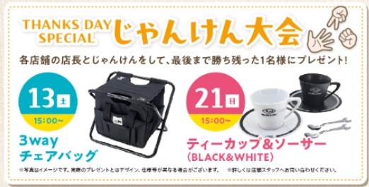 期間中、ご来店いただいたお客様は「THANKS DAY Challengeくじ」