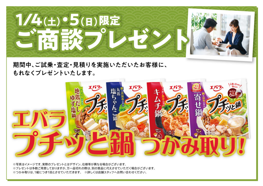 ご商談プレゼント:期間中、ご試乗査定お見積りを実施して頂いたお客様にもれなくプレゼント