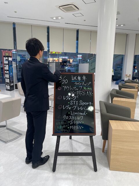 試乗車ボード!発案者の山野店長が背中で語ってくれています