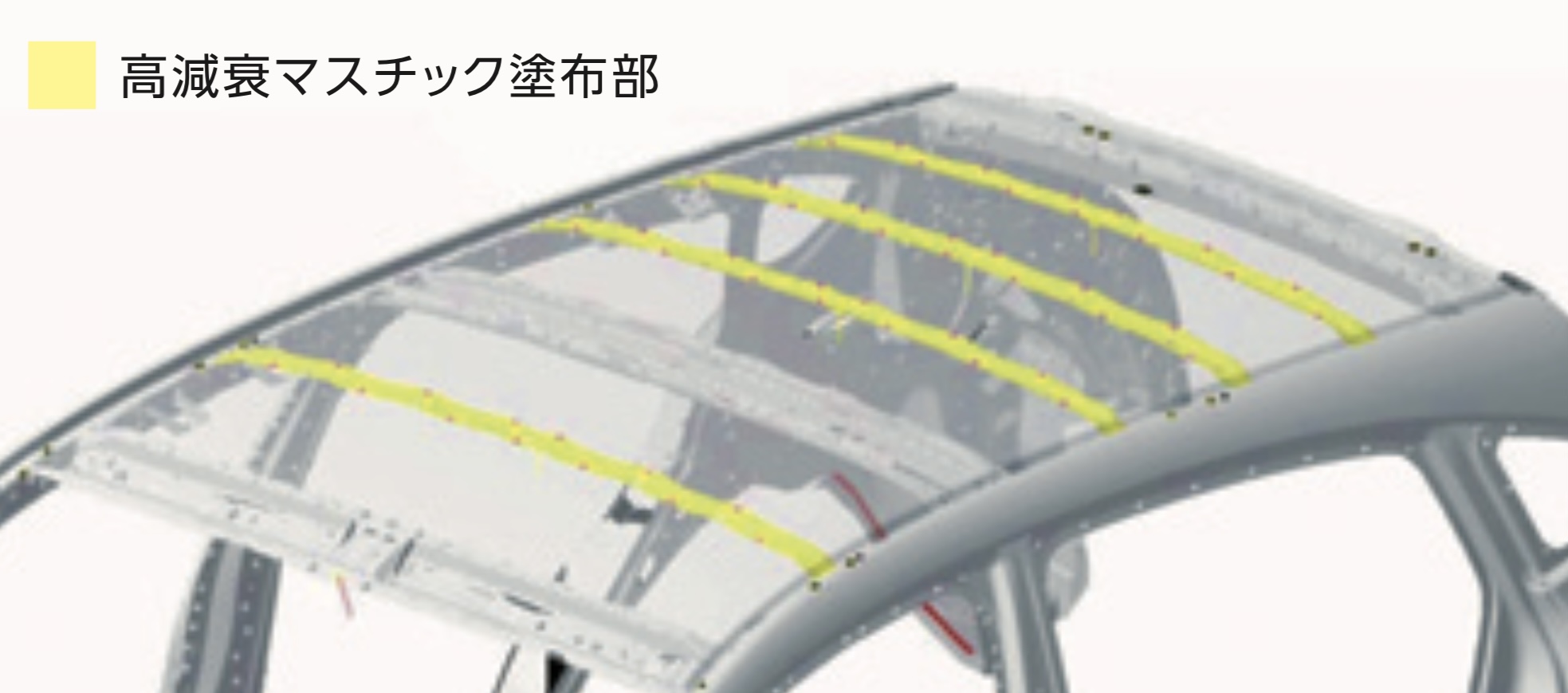 高減衰マスチックによりルーフの空洞が埋まり、詰まったような音がします。