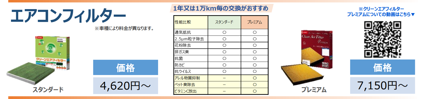 エアコンフィルター交換のタイミングは走行キロ1万㎞または1年毎で交換を
