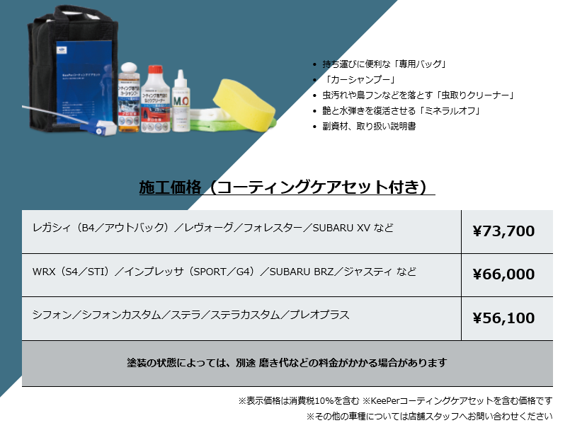高密度ガラス被膜とレジン被膜(撥水性能に優れていて比較的持続性がある)
