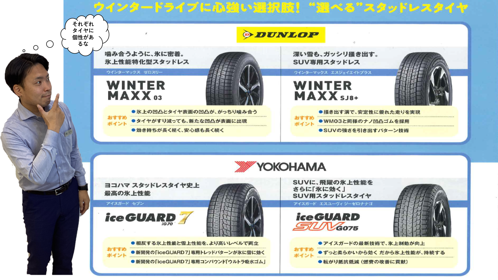 スタッドレスタイヤどれにしようかな?という方は廿日市店にGO!