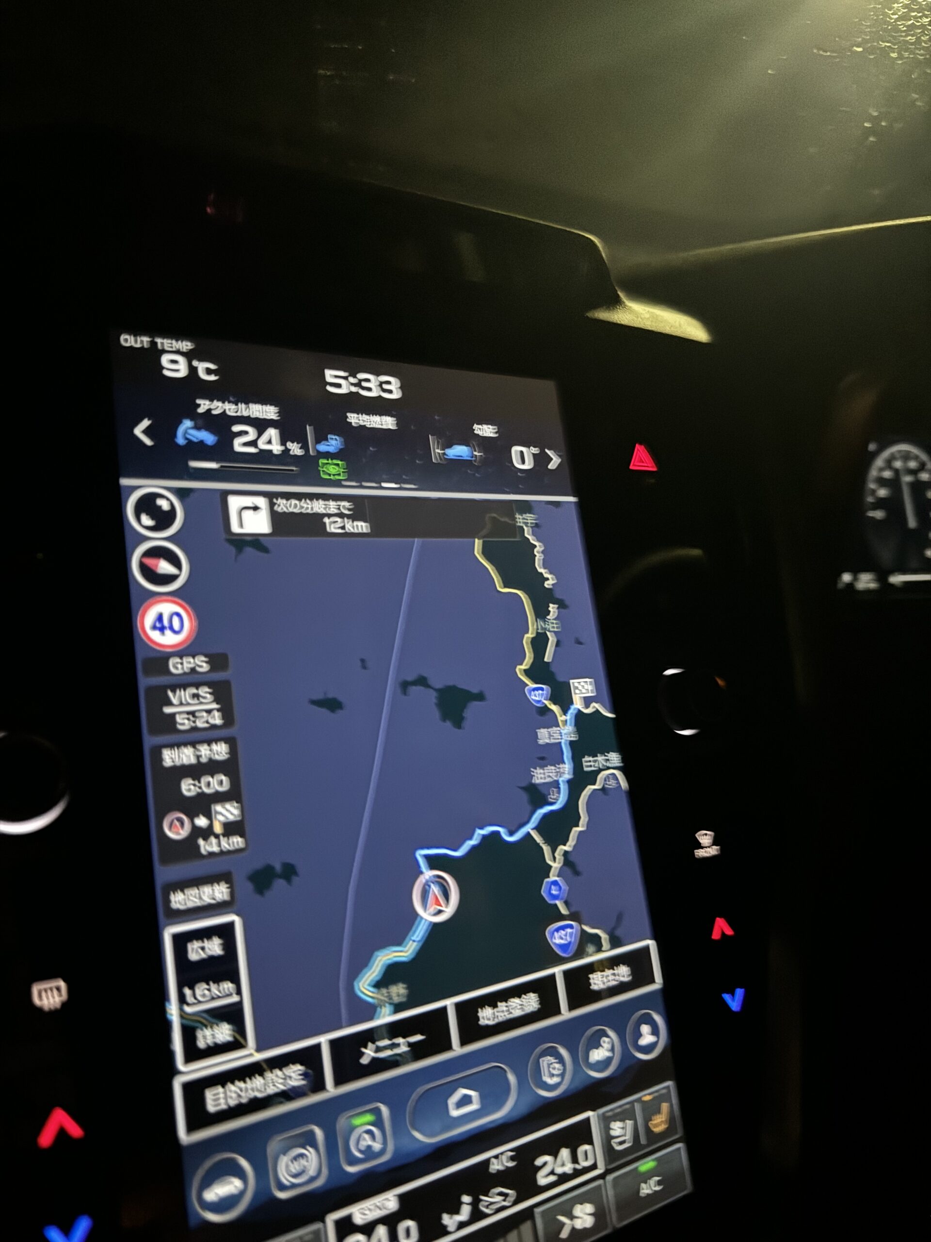 出発から約2時間、マツノ初めての大島入りです!!! が、暗くて景色が全く分からない、、、