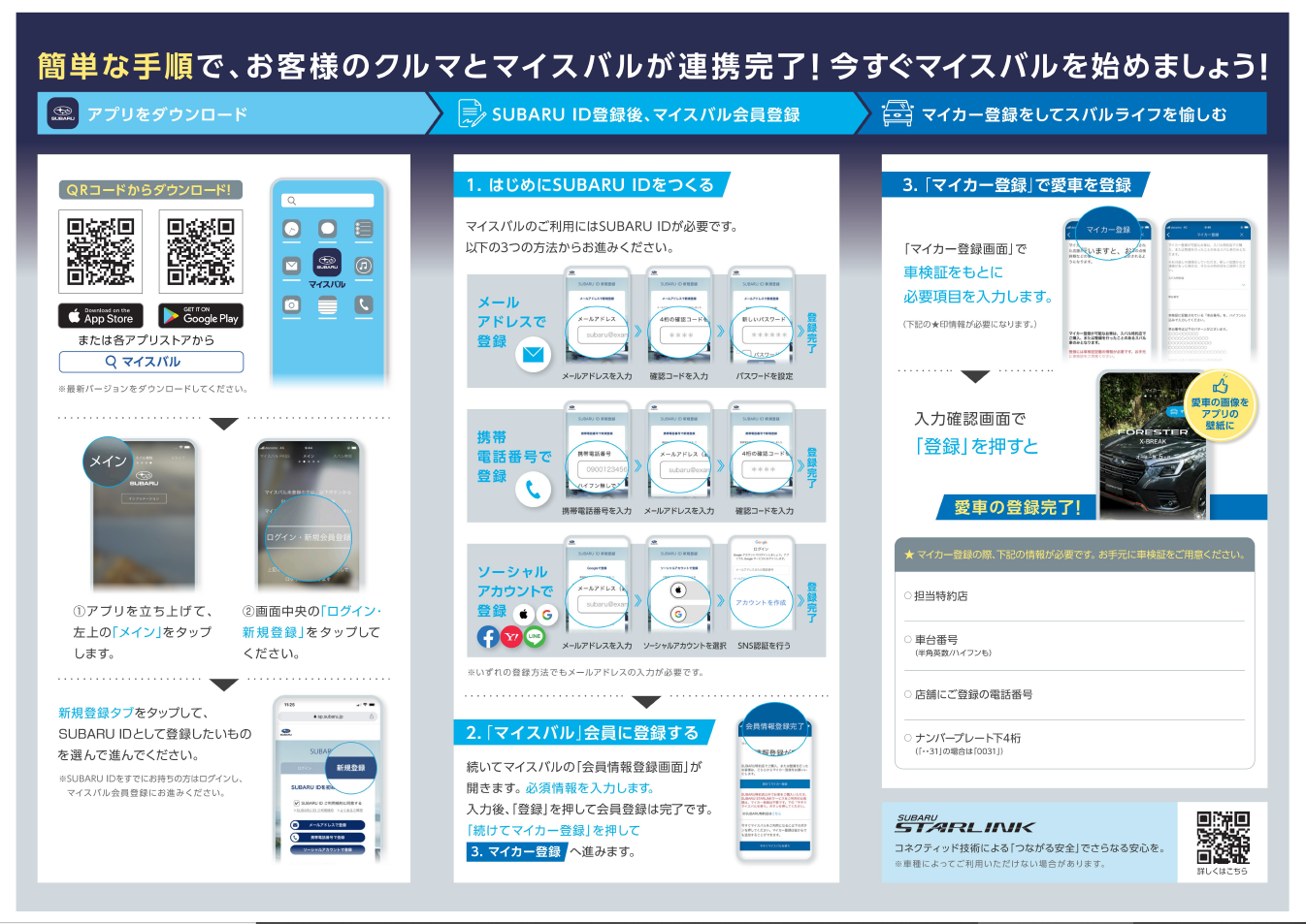 マイスバルアプリご加入でご自身の車の詳細がいつでも確認できます。