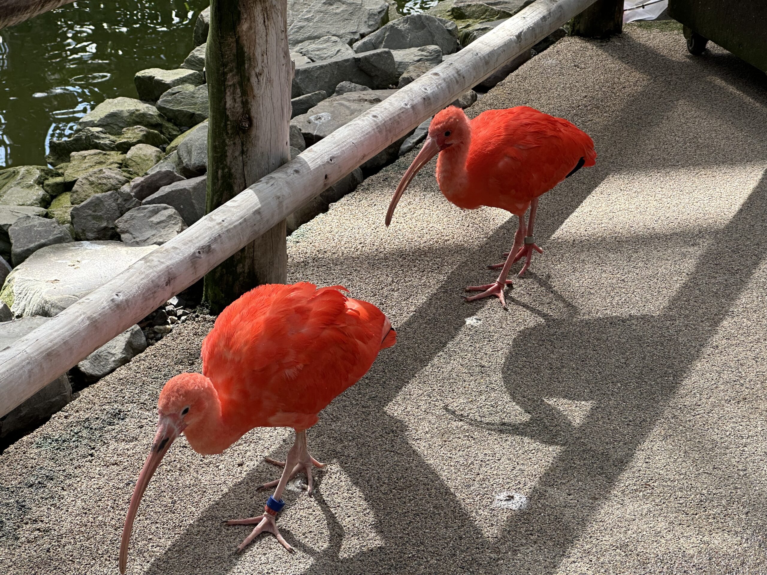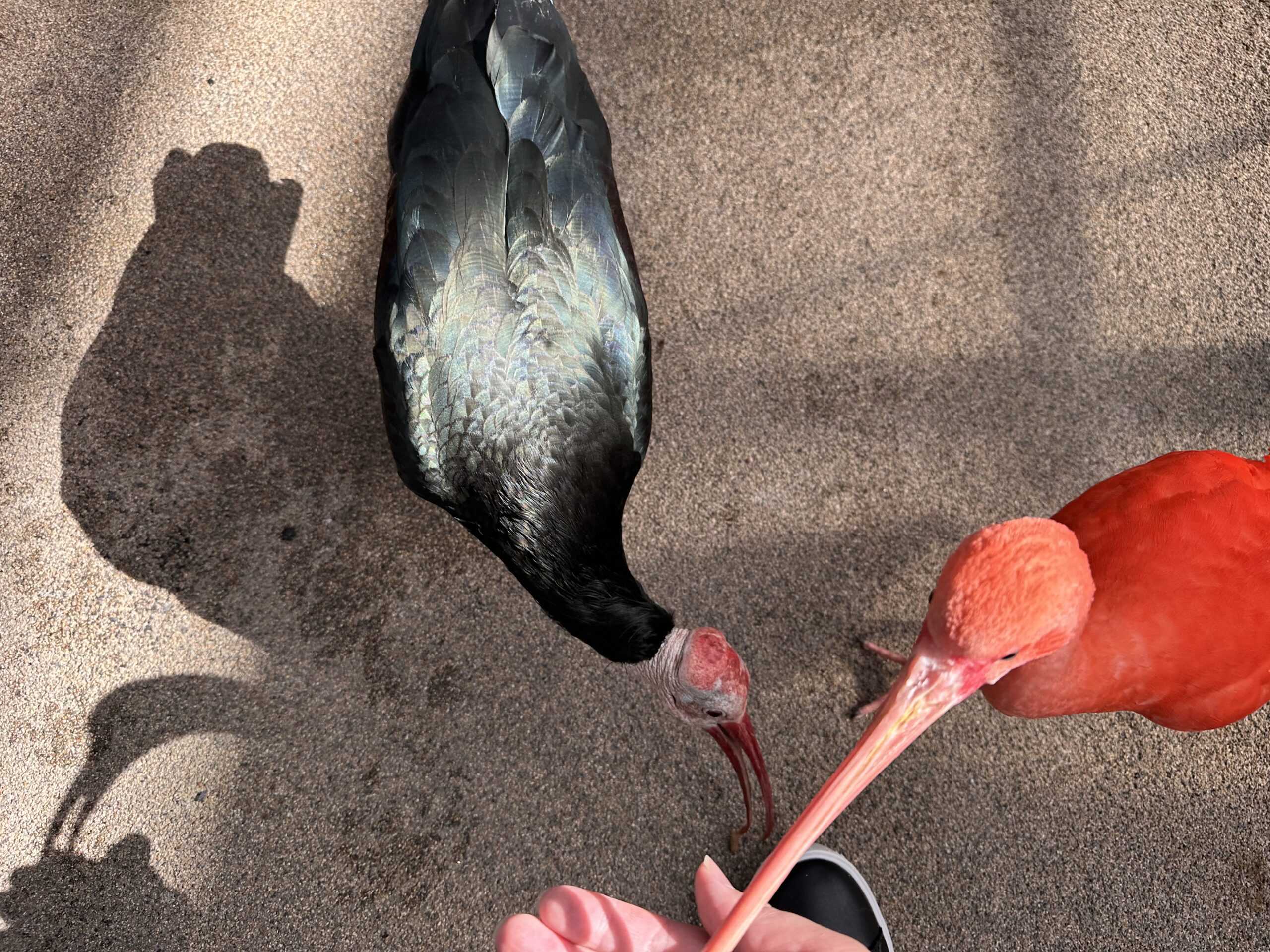 ここではペリカンやフラミンゴ、ショウジョウトキがいます。ショウジョウトキには餌をあげることができます。