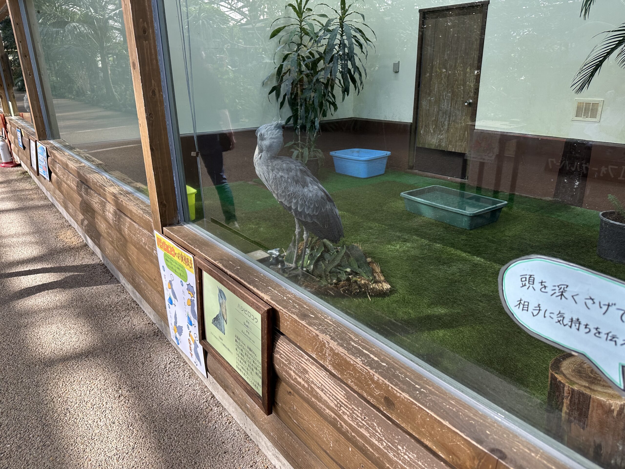 ハシビロコウは本当に動かない鳥なんです。さっと見て終わりだと動かずそのまま終わってしまうので、可能なら他の鳥より長めに見ることをオススメします。