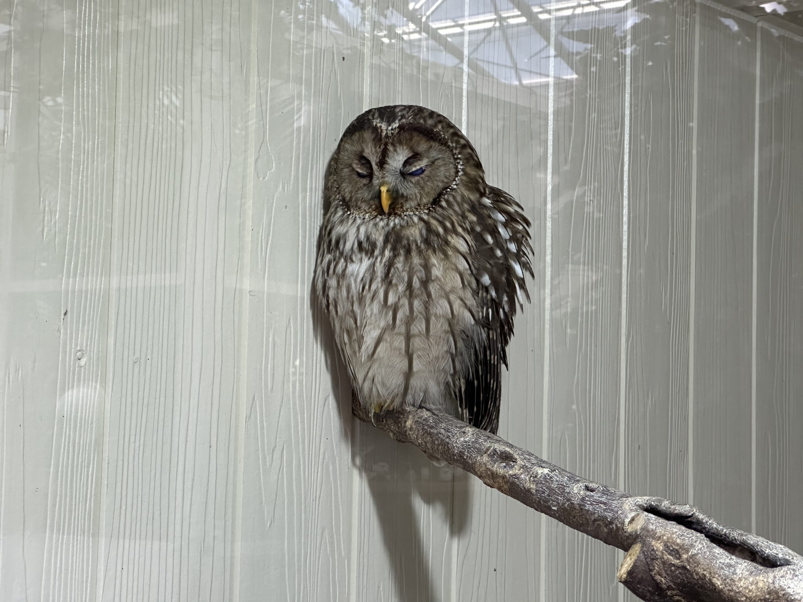 眠そうなフクロウを見つけました。