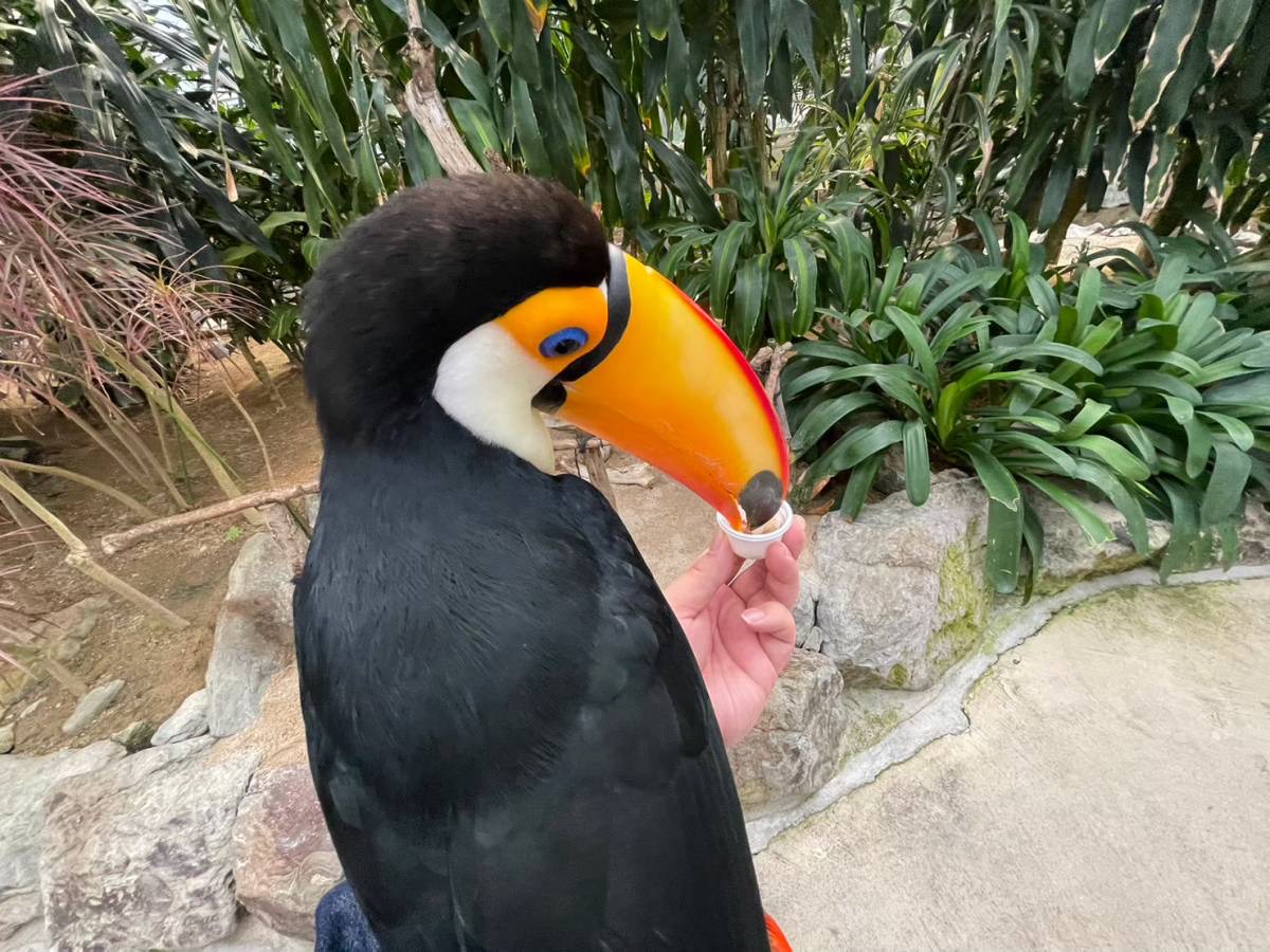 オニオオハシに餌をあげることもできます。すごく大きなクチバシをしているので怖そうに思っている方も大丈夫です。かなり協調性がある鳥として知られていますので、襲ってくることはありません。(maybe)