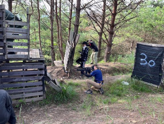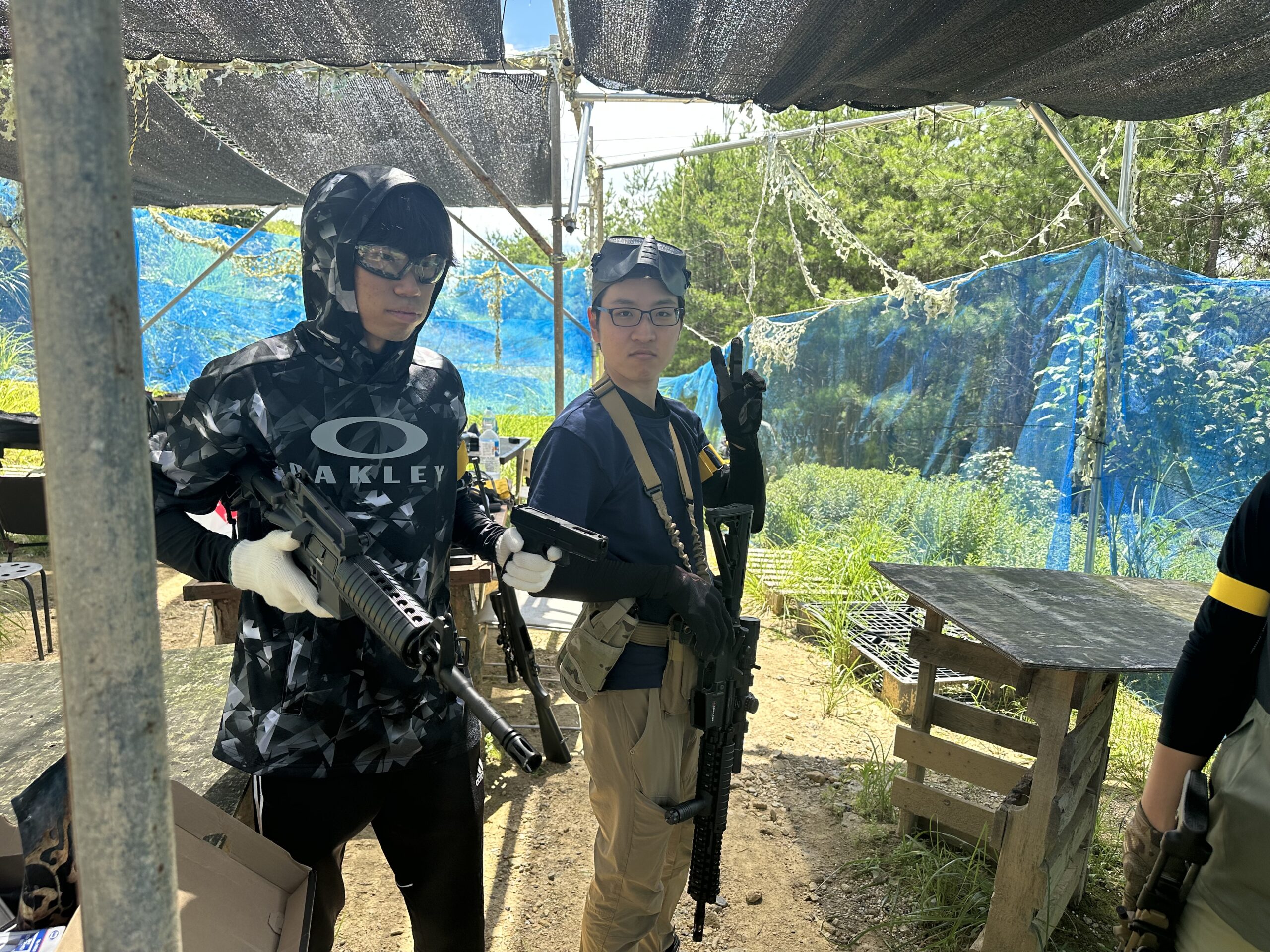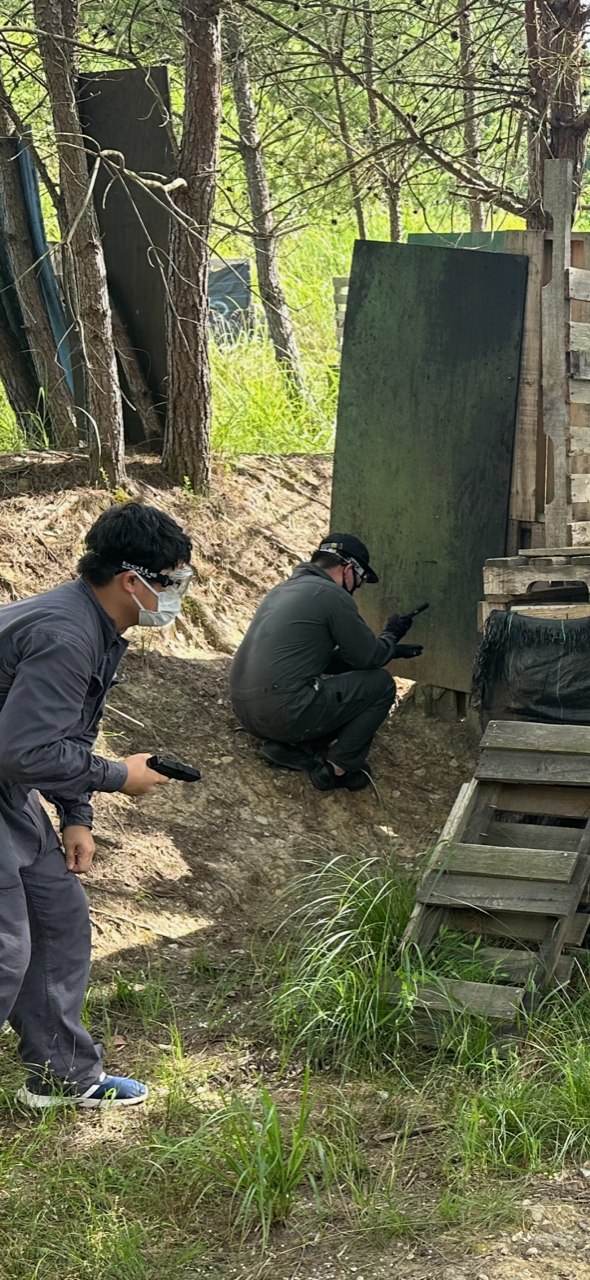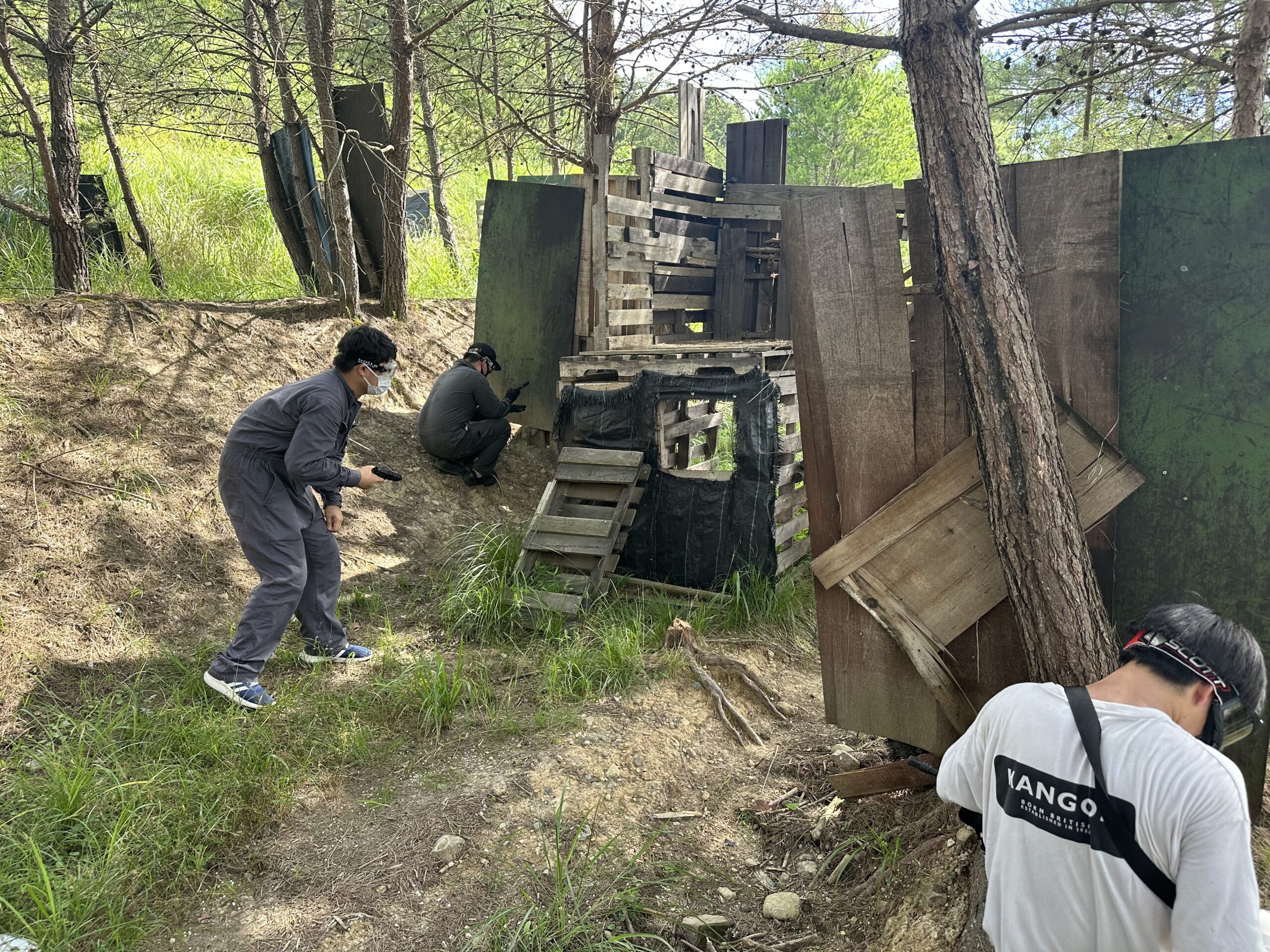 かつて尾道店にいた下井さんと現在尾道店にいる高橋さんです。サバゲーの装備って結構自由で、動きやすい服装でいいわけです。