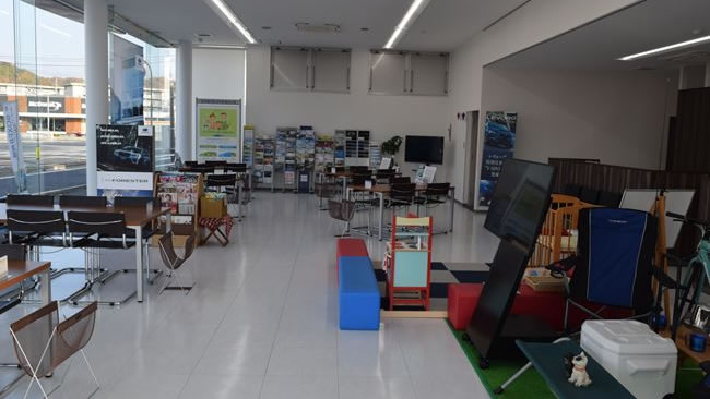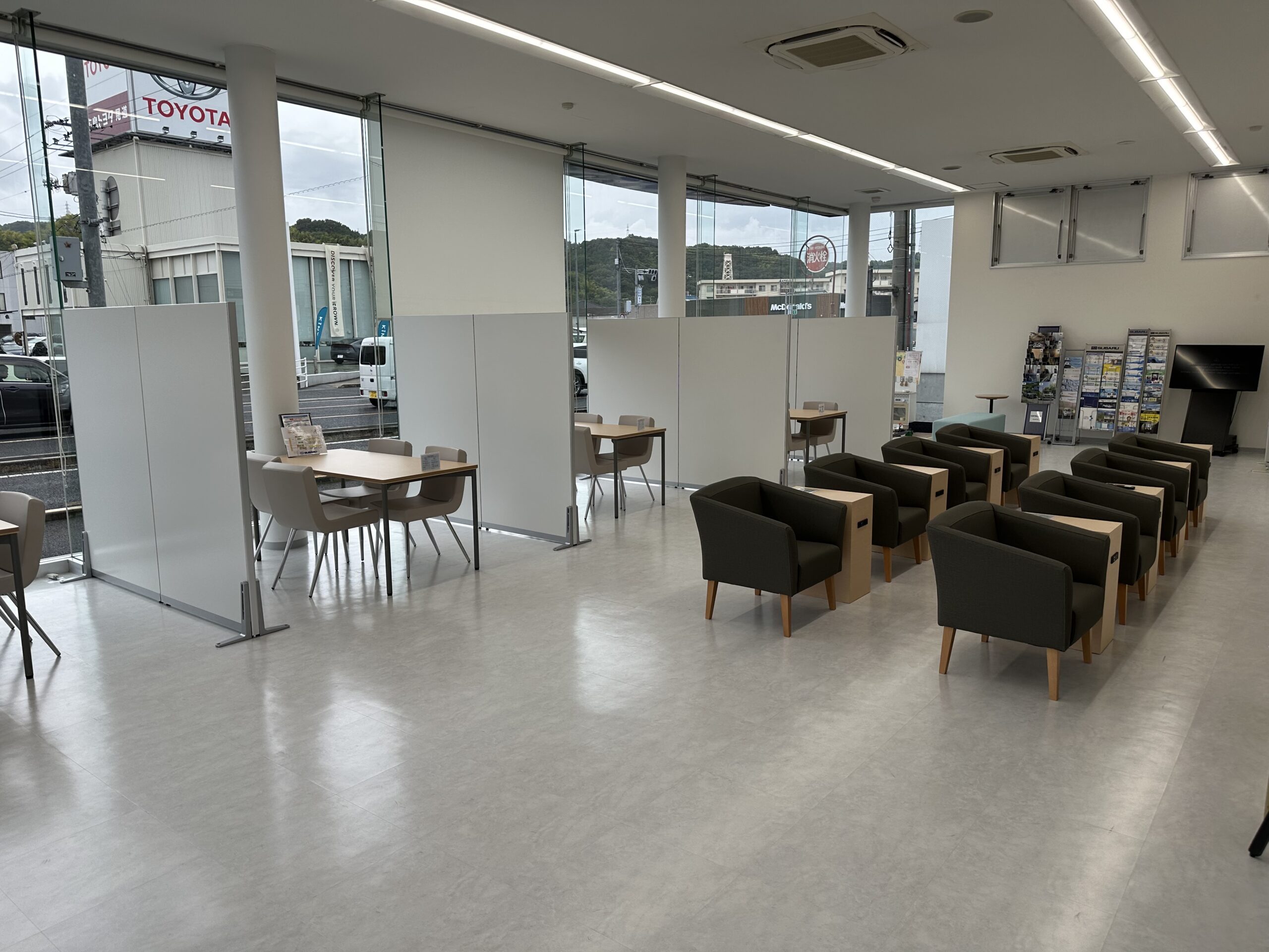 AFTER:店舗入り口から店舗奥(仕切りがある席は点検待ち席 兼 商談席)