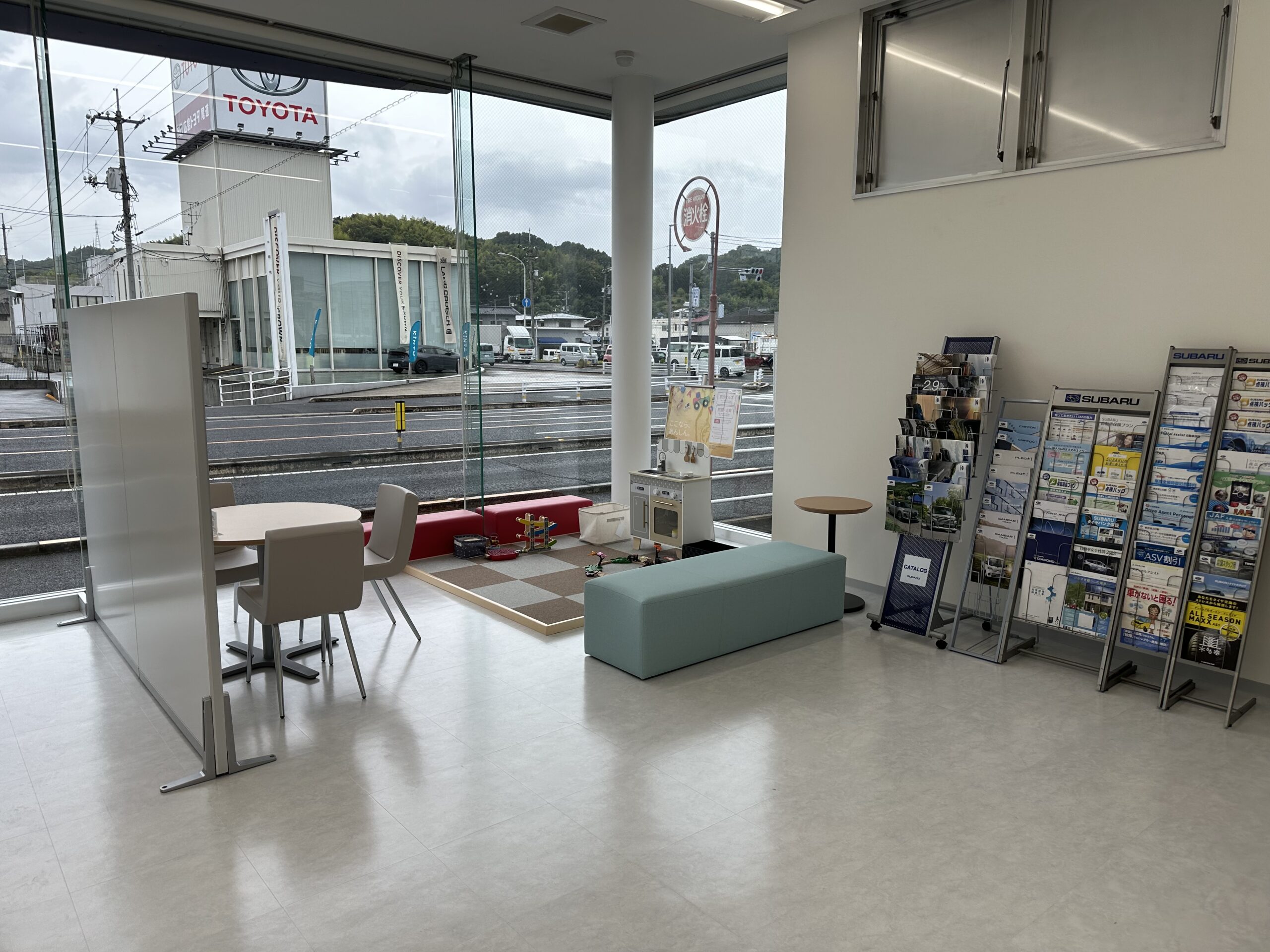 店舗奥テーブル席とキッズコーナー