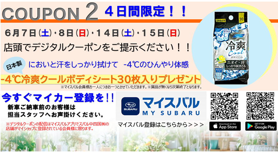 今週もマイスバル会員様限定の特典をご準備しております!!