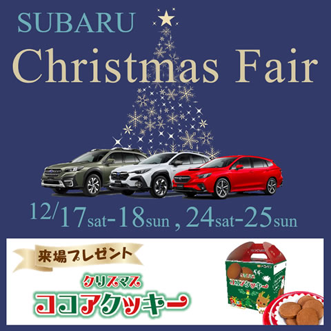 12月18日(土)、19日(日)・24日(土)、25日(日)の2週連続で「SUBARU クリスマスフェア」を開催いたします。