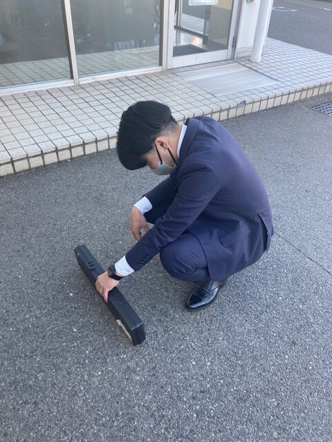三角表示板組み立て初心者のスタッフに手伝ってもらいタイムを計測してみました。
