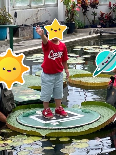 この度、広島市植物公園のオオニバス試乗に当たったので盆休みに家族で行きました。