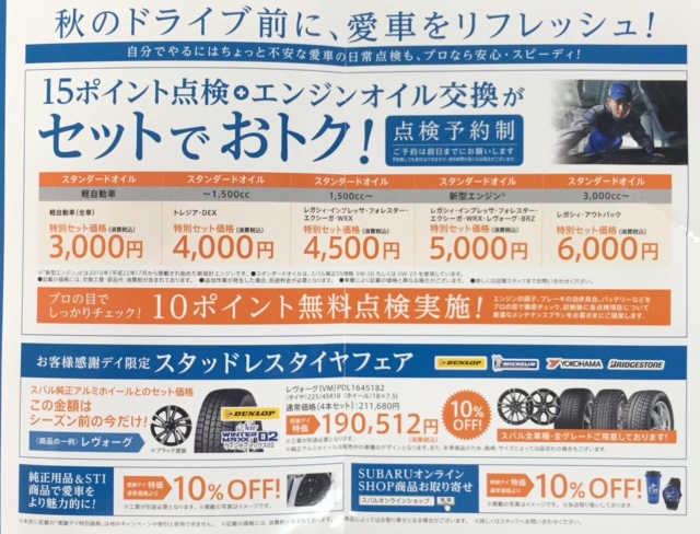 この時期には嬉しいスタッドレスタイヤフェアーも開催しますッ!!(^з^)