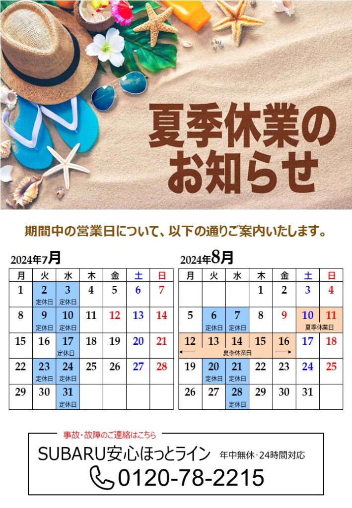 続いて、夏季休業日についてもご案内いたします。