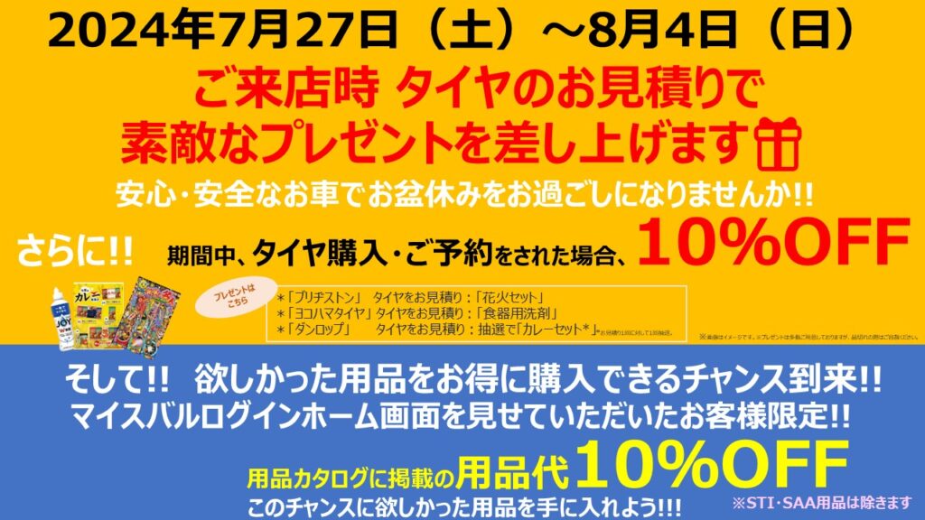ご来店時のタイヤお見積りで素敵なプレゼント差し上げます!