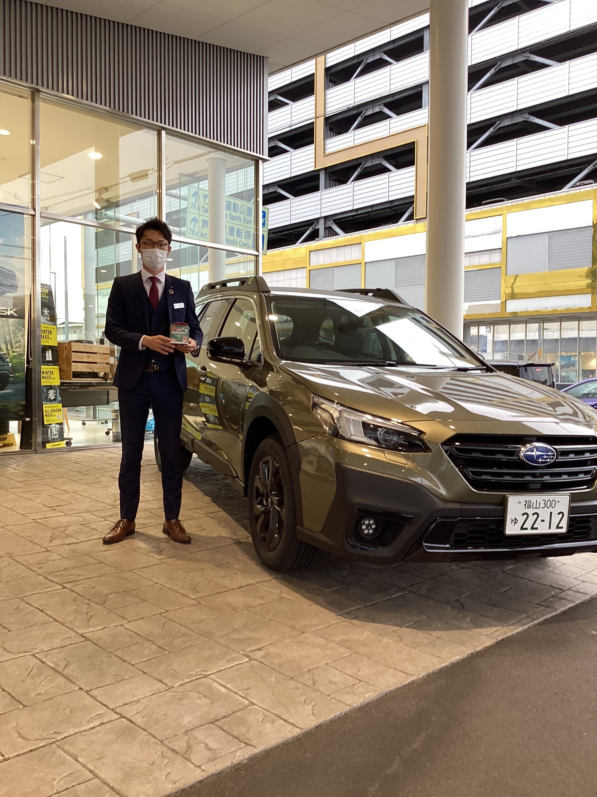 超かっこいいアウトバックと、それを凌駕するカッコよさ(本人主張)貫井CAのツーショットお送りします。似合いますね