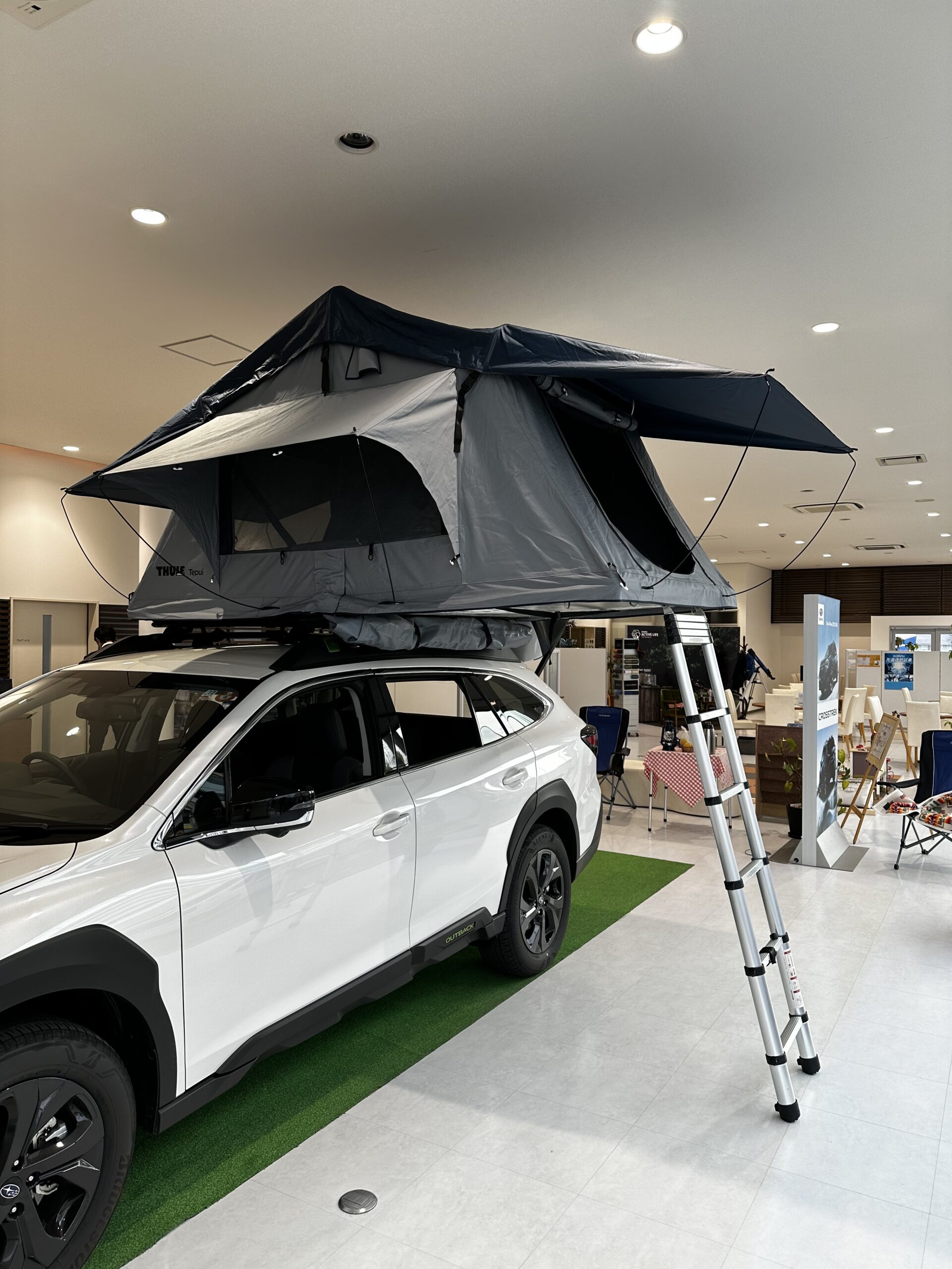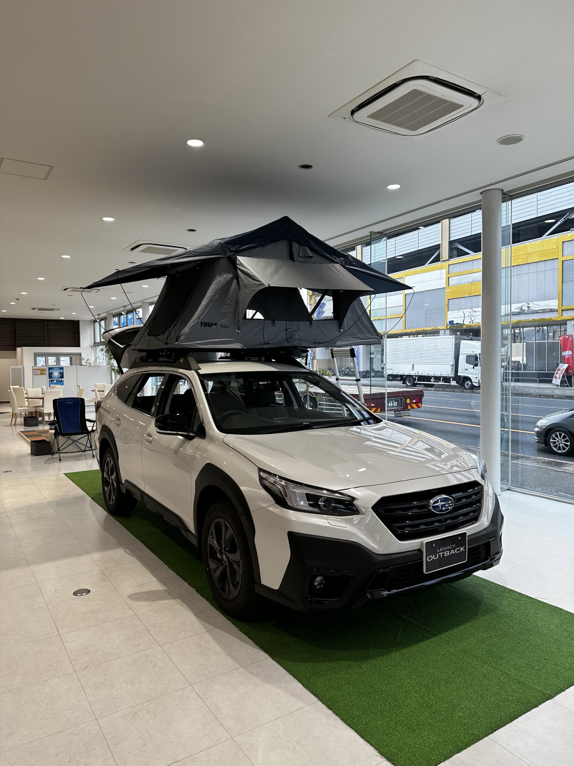 出社したらアウトバック(かっこいい)の上にテント生えてる!!!!!!