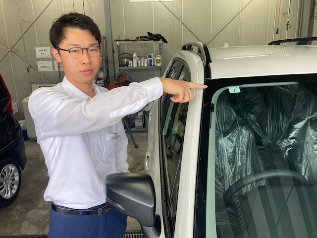 ドライバーの方から車検満了日の確認がしづらく、車検切れを起こすのを防ぐための貼り付け位置変更とのことです。室内から見ると車検満了日の記載がございますので皆様も一度ご確認ください。