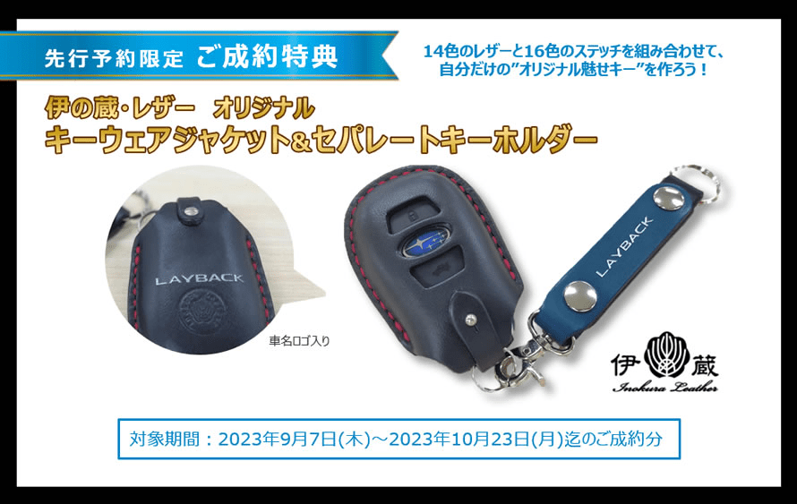 10月23日(月)までにレイバックをご予約いただいた方限定「伊の蔵 キーウェアジャケット&セパレートキーホルダー」プレゼント。